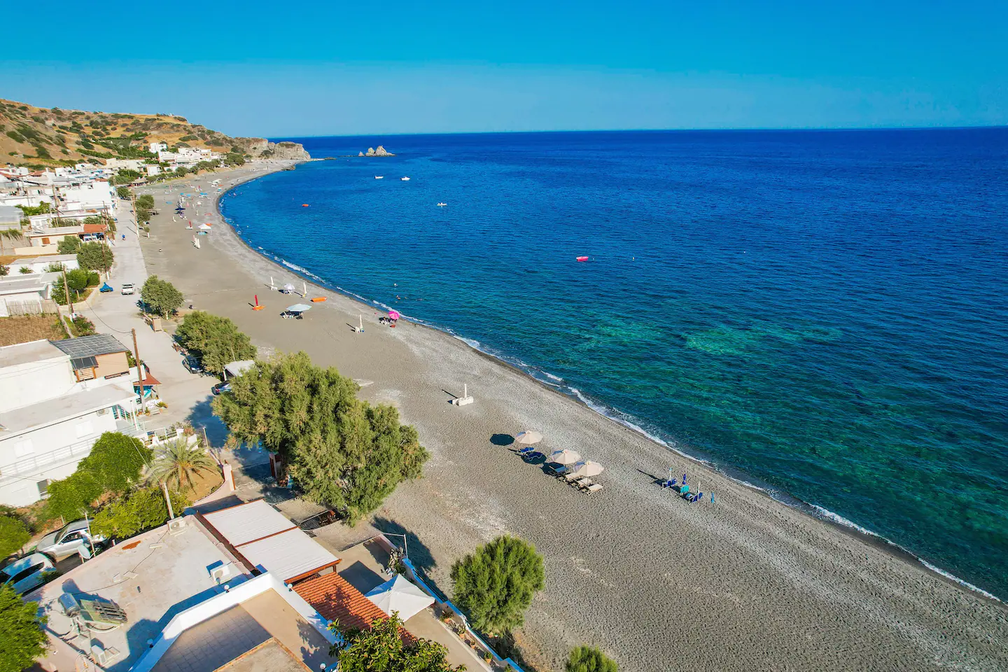 Here is our Almyriki Beach Studio right on the beach on the south coast of Crete, on the picturesque beach of Sidonia. Have you ever dreamed of waking up and just moments later swimming in the Libyan Sea? Then this is the perfect studio to make your dream come true. The studio is located on the edge of the beach and consists of an open-plan living room with a double bed and a sofa bed for 2 more people, a fully equipped kitchen and a bathroom, a large front garden with garden furniture and a breathtaking view.
