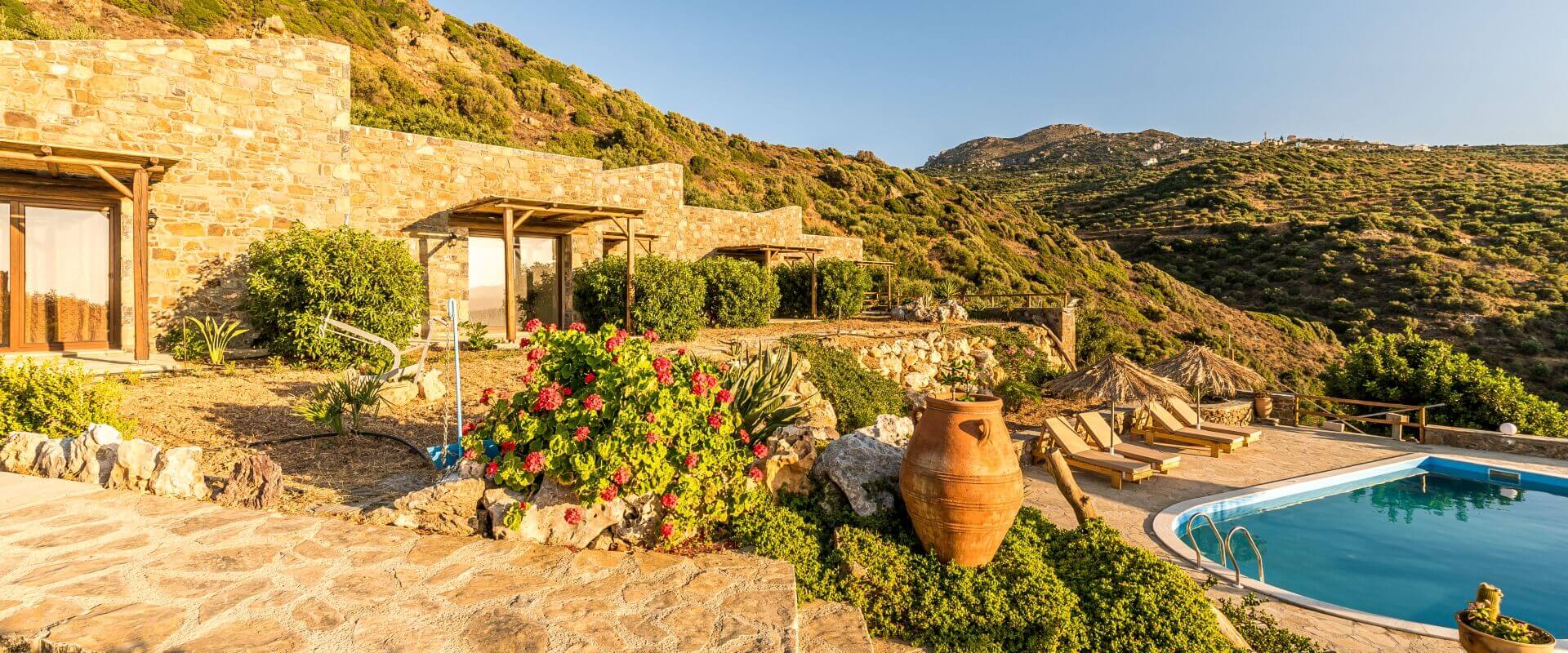 Luxurious studios and maisonettes in an elevated position with panoramic views and a pool