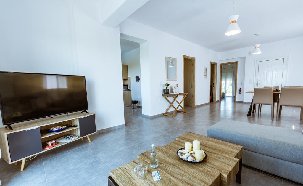 Two new apartment units in the village of Drapanias in northwestern Crete. 80 sqm large apartment with two bedrooms to accommodate 4 people. Living room with kitchen and bathroom with toilet and shower. Balconies and balcony furniture are also available. From there you can enjoy views of the garden with its pool and barbecue area, the sea or the mountains. All rooms are air-conditioned and have Wi-Fi. The beach is 200 m away. Parking for your rental car is available directly at the accommodation. It takes 30 minutes to get to Chania Airport. And all the wonderful beaches in the west of Chania can be easily reached from here.