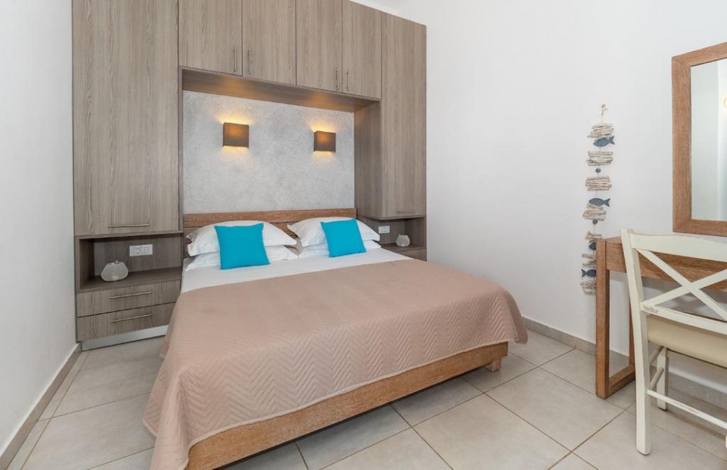 The air-conditioned maisonette apartments are well equipped in any case, have a small kitchenette, a comfortable double bed, a living room with two further sleeping accommodations, a bathroom with shower/WC, satellite TV and internet. A hairdryer, iron and ironing board are of course also provided.