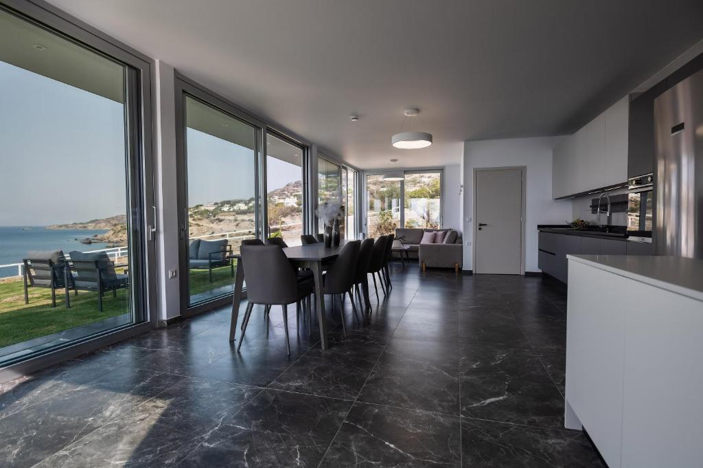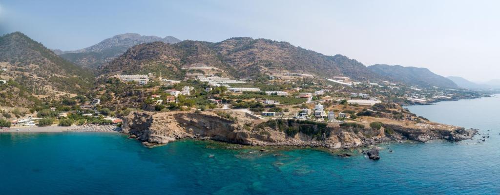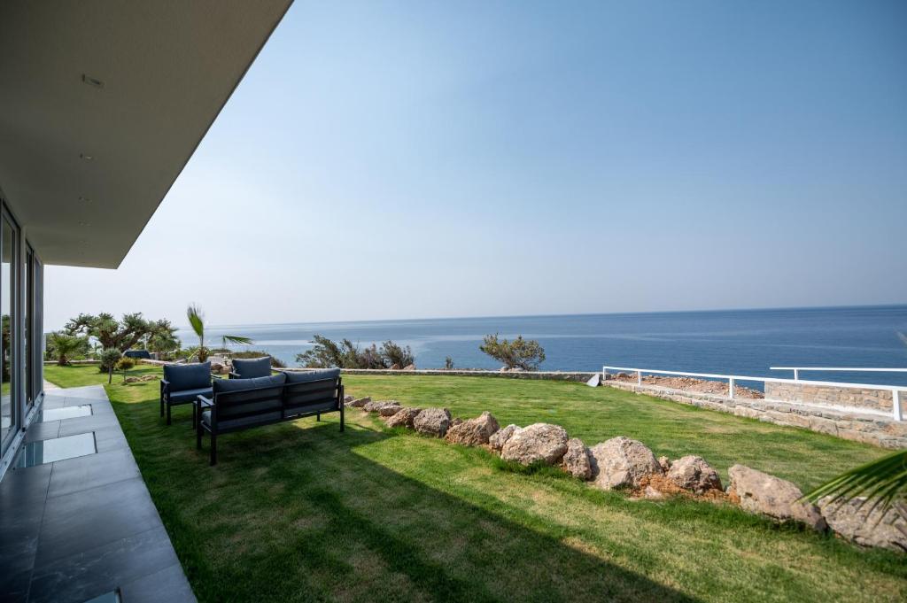 Our Villa Achlia Beach 2 is new and modern and is located just 200 metres from the sea on a beautiful cliff with a magnificent view of the sea. Equipped with two bedrooms, it can accommodate up to 4 people. You will find a fully equipped kitchen with all accessories, a bathroom with WC and shower and a dreamlike living-dining area with a breathtaking view of the sea, made possible by the many and large windows. You could be forgiven for thinking you were in a glass house. The house is surrounded by a garden with an outdoor dining area. There is also a whirlpool in the outdoor area. You can park your hire car, which is included in the price, in the street in front of the house.
