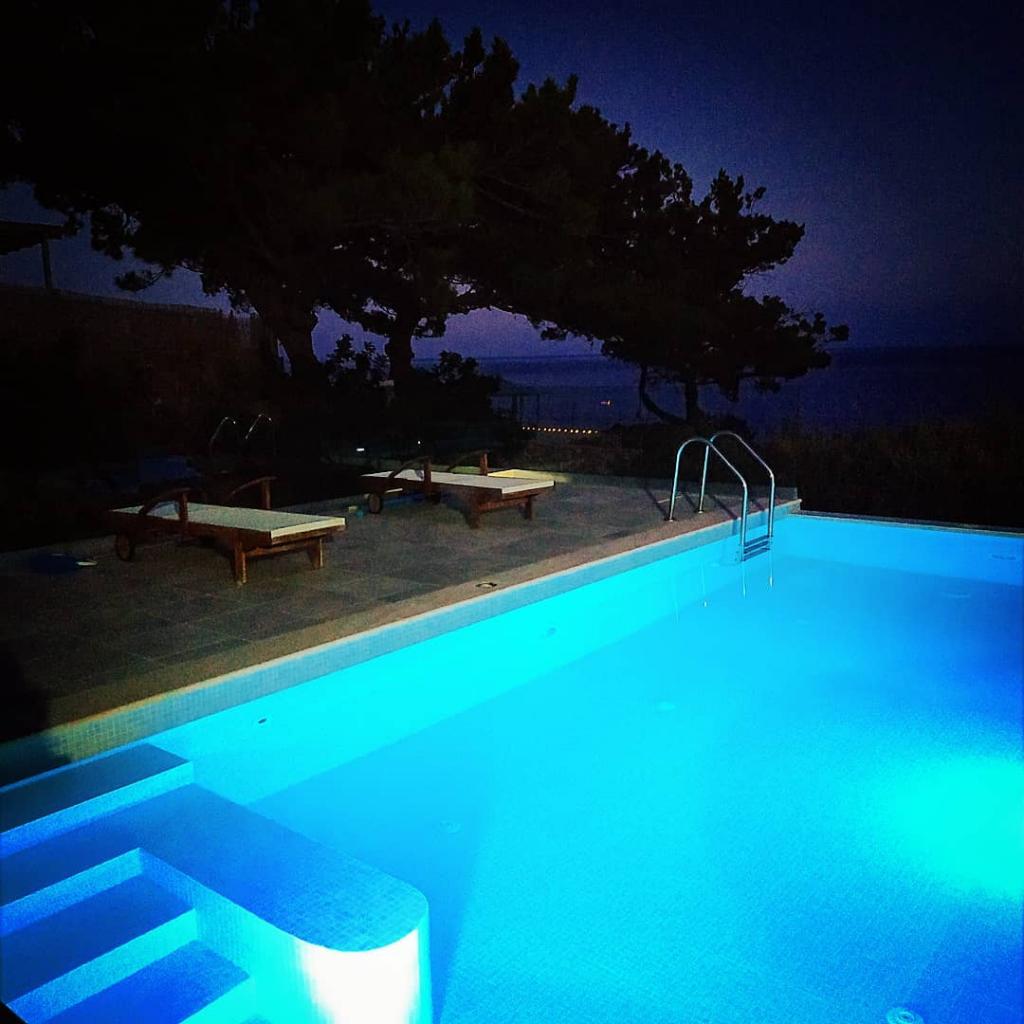 Outside, there is a pool and a furnished terrace with a great sea view, as well as a nice BBQ area for evening barbecues. In the immediate vicinity, there are some shops and good, typical taverns – with the rental car included in the rental price, you can also take numerous interesting excursions.