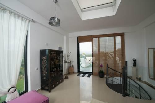 Die moderne und stilvoll eingerichtete Villa (75 qm) für bis zu drei Personen liegt am Rand des kleinen, authentischen Dorfes Kamilari an der Süküste Kretas. Die vollklimatisierte Villa mit großen Panoramafenstern besitzt ein schönes Schlafzimmer mit großem Doppelbett, einem hübsch dekorierten Wohnzimmer mit Schlafsofa und Flachbild-Sat-TV, einer komplett eingerichteten Küche mit Essbereich und einem modernen Badezimmer mit Hydromassagedusche und Waschmaschine. Die Wohnung öffnet sich zu einer großzügigen Terrasse, auf der Sonnenliegen und ein kleiner Pool mit Whirlpool-Funktion zum Entspannen einladen, sowie zu einem Garten mit Barbecue. Desweiteren gibt es auch noch eine möblierte Dachterrasse mit herrlicher Aussicht.
